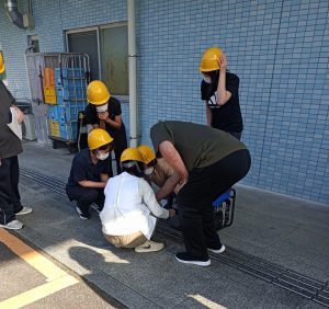 訓練後は、非常用発電機の試運転を実施し、災害時に備えて使用方法の再確認を行いました。