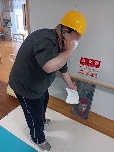 緑風苑では、年に一度、消防訓練とポータブル非常用発電機の試運転および使用方法の再確認を行っています。 今回の消防訓練では、別館1階の火災発生を想定し、職員全員で避難誘導の手順を確認しました。