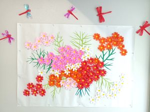 本館と別館の渡り廊下には「コスモス」と「とんぼ」をテーマに飾りつけを行い、秋の訪れを感じられる温かい空間となっております🍁