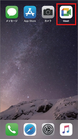 「Meet」がインストールされたスマートフォンを準備し、電波が繋がるところで待機します。