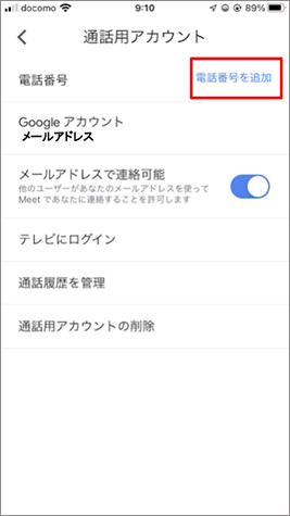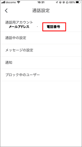 通話用アカウント欄に登録した電話番号が表示されていれば通話設定はできています。